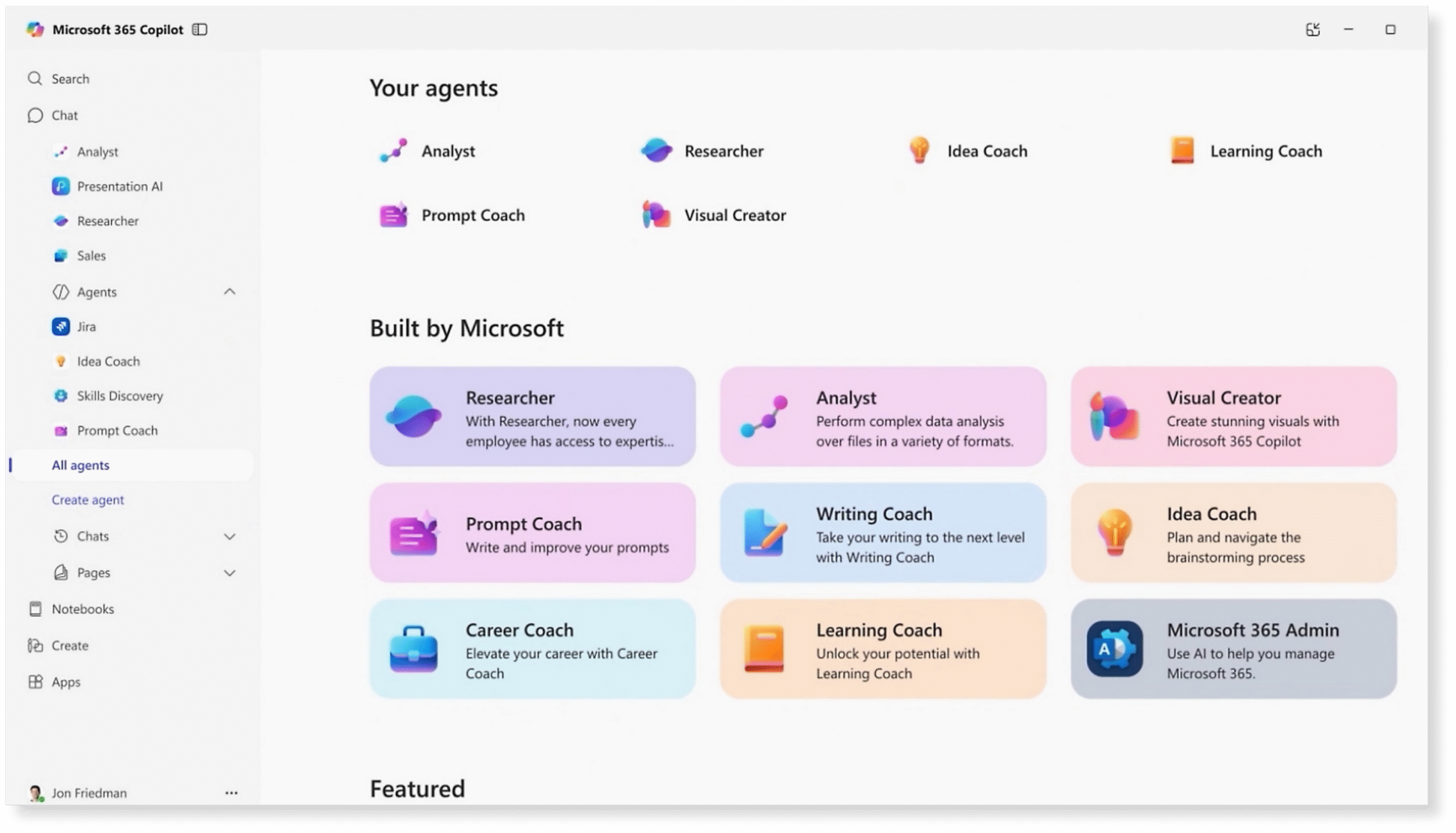 Microsoft 365 Copilot è l’interfaccia utente per l’intelligenza artificiale, che fornisce il luogo in cui persone e team interagiscono con gli agenti nel flusso di lavoro. Gli agenti possono utilizzare funzionalità di Copilot come Copilot Pages per garantire un’esperienza coerente.